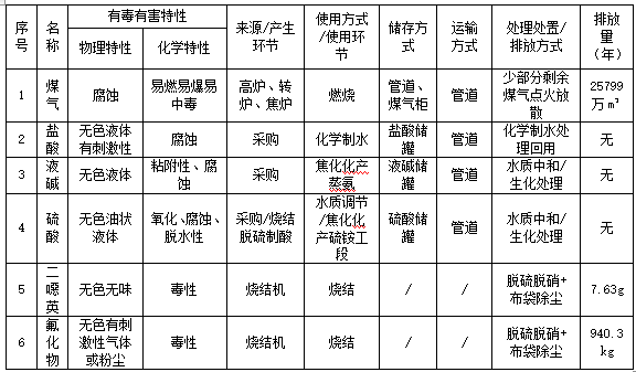 2.排放有毒有害物质情况表